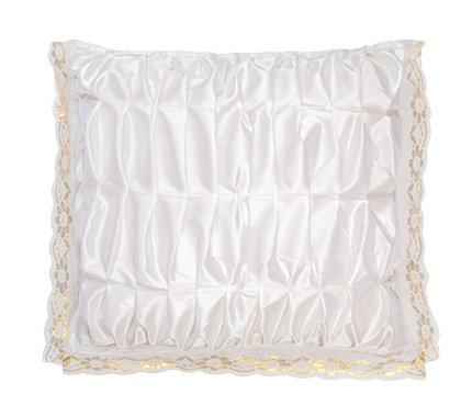 - Подушка под голову усопшего должна быть в меру набитой искусственным наполнителем. Её предназначение – фиксация головы скончавшегося в одном положении.