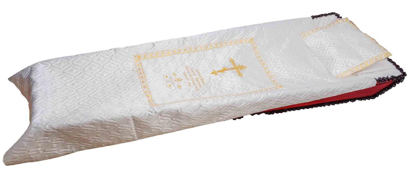 - Постель в гроб приобретается в случае публичных похорон, когда предполагается, что с почившим придут проститься и малознакомые семье люди.